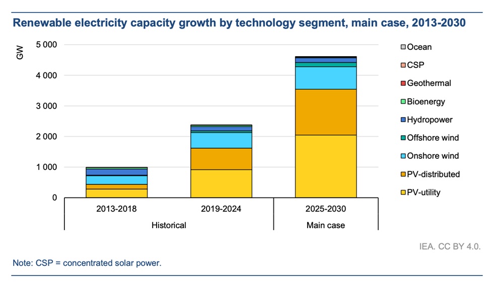 El informe afirma que el 80 % de los países verán crecer su capacidad de energía renovable entre 2025 y 2030 más rápidamente que en los cinco años anteriores. El director ejecutivo de la AIE, Fatih Birol, destacó a Arabia Saudita, Pakistán y varios países del sudeste asiático como zonas en las que se prevé un auge de la energía solar.